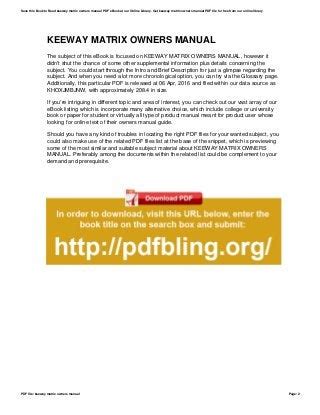 Read Online keeway matrix user manual Kindle Editon Open Library
